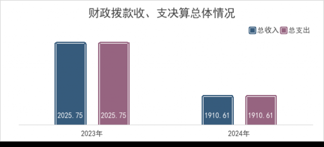 2024年度财政拨款收、支总计均为1910.61万元。与2023年度相比,财政拨款收、支总计各减少115.14万元,下降5.7%。主要变动原因是2024年项目支出减少。