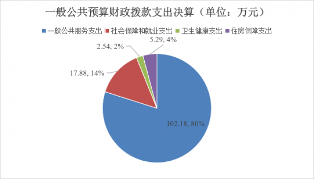 2024年度一般公共预算财政拨款支出127.89万元,主要用于以下方面:一般公共服务支出102.18万元,占79.9%;教育支出0万元,占0%;科学技术支出0万元,占0%;文化旅游体育与传媒支出0万元,占0%;社会保障和就业支出17.88万元,占13.98%;卫生健康支出2.54万元,占1.99%;住房保障支出5.29万元,占4.13%。