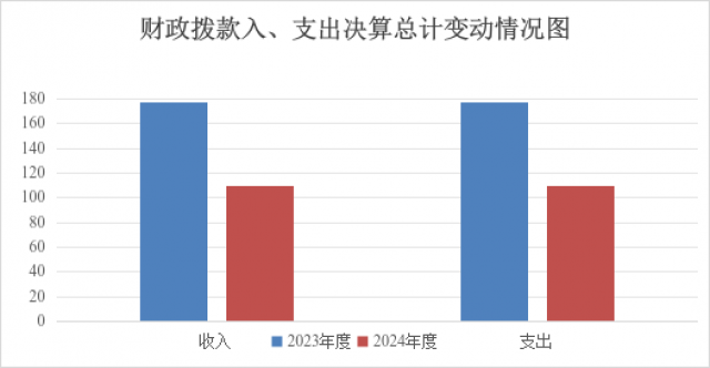 2024年度财政拨款收入、支出总计均为109.4万元。与2023年度相比,财政拨款收入总计、支出总计各减少67.19万元,下降38.05%。主要变动原因是项目支出减少。