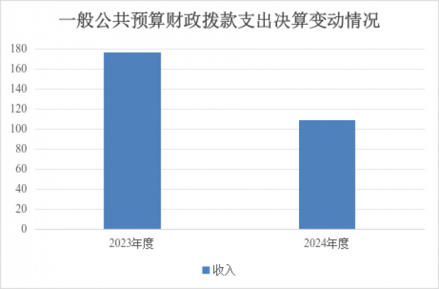 2024年度一般公共预算财政拨款支出109.4万元,占本年支出合计的100%。与2023年度相比,一般公共预算财政拨款支出减少67.19万元,下降38.05%。主要变动原因是项目支出减少。