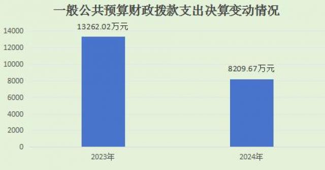 2024年度一般公共预算财政拨款支出8209.67万元,占本年支出合计的100%。与2023年度相比,一般公共预算财政拨款支出减少5052.35万元,下降了38.1%。主要变动原因:一是本年度公共卫生服务等项目的资金由财政部门直接下达各预算单位,减少了项目预算。二是县卫生健康局本级行政单位、计划生育服务中心、原计划生育服务站在职职工在本年度内退休较多,导致社会保障和就业支出、行政事业单位医疗费等人员经费及公用经费减少。