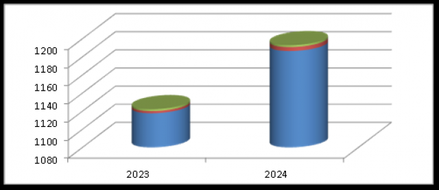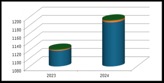 2024年度财政拨款收入、支出总计均为1186.38万元。与2023年度相比,财政拨款收入总计、支出总计各增加68.66万元,增长6.14%。主要变动原因是国家大的宏观政策。