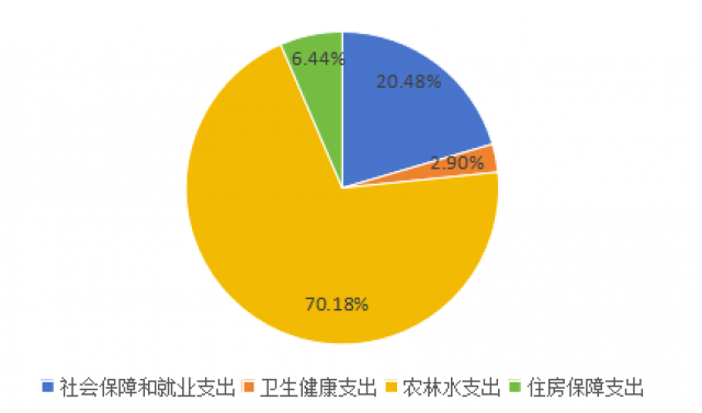 2024年度一般公共预算财政拨款支出119.22万元,主要用于以下方面:社会保障和就业支出为24.41万元,占20.48%;卫生健康支出为3.46万元,占2.90%;农林水支出83.67万元,占70.18%;住房保障支出为7.68万元,占6.44%。