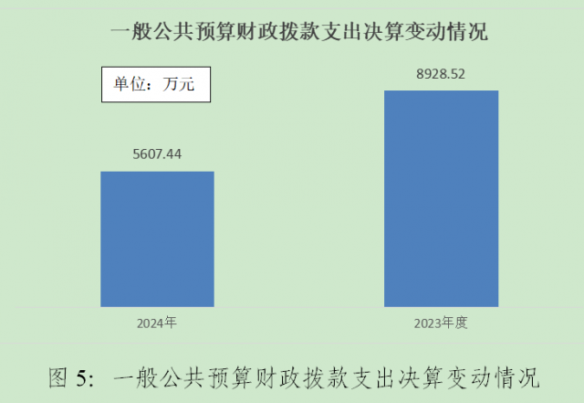 2024年度一般公共预算财政拨款支出5607.44万元,占本年支出合计的100%。与2023年度相比,一般公共预算财政拨款支出减少3320.08万元,减少37.19%,主要变动原因是公路养护工程项目资金减少以及在职人员退休减员。