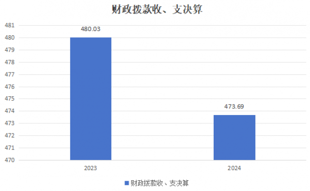 2024年度财政拨款收入、支出总计均为473.69万元。与2023年度相比,财政拨款收入总计、支出总计各减少6.34万元,下降1.3%。主要变动原因是单位有职工退休。