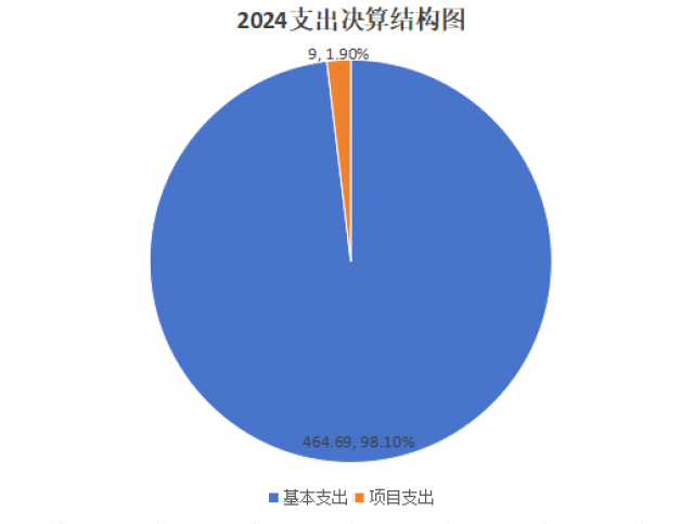 2024年度本年支出合计473.69万元,其中:基本支出464.69万元,占98.1%;项目支出9万元,占1.9%。