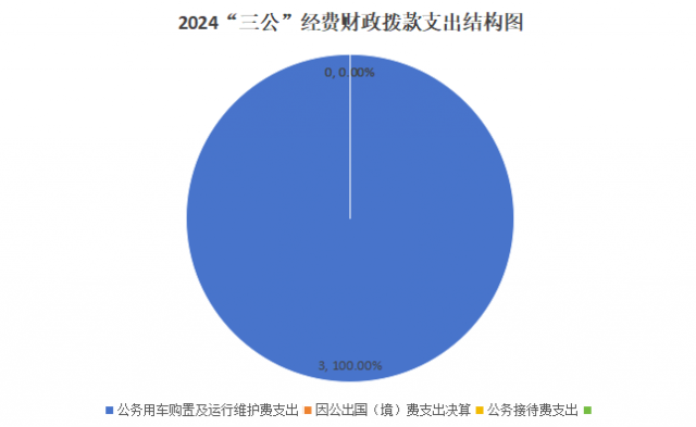 2024年度“三公”经费财政拨款支出决算中,因公出国(境)费支出决算0万元;公务用车购置及运行维护费支出决算3万元,占100%;公务接待费支出决算0万元。