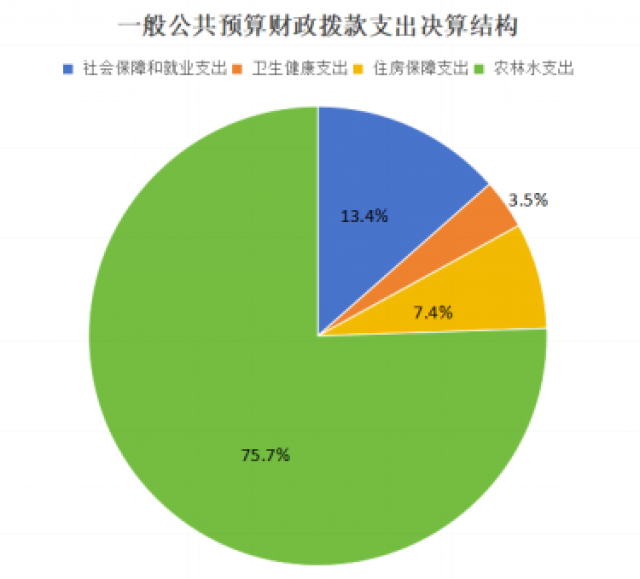 2024年度一般公共预算财政拨款支出357.33万元,主要用于以下方面:社会保障和就业支出48.02万元,占13.4%;卫生健康支出12.35万元,占3.5%;住房保障支出26.49万元,占7.4%;农林水支出270.46万元,占75.7%。