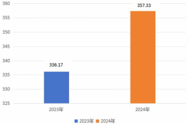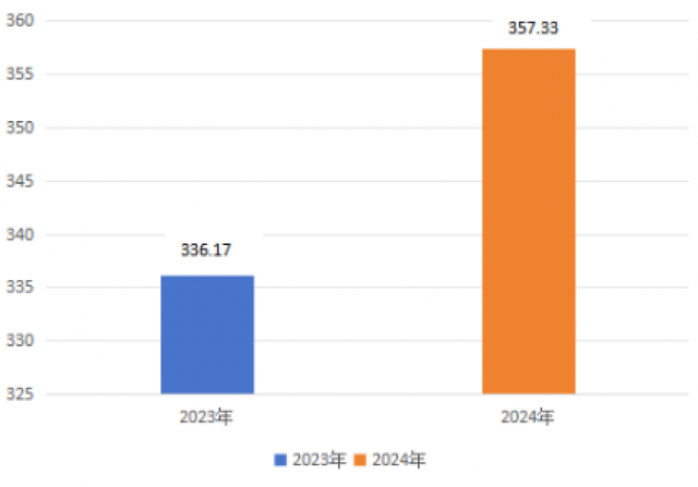 2024年度收入、支出总计均为357.33万元。与2023年度相比,收入、支出总计各增加21.16万元,增长6.3%。主要变动原因是人员新增,人员调资等。