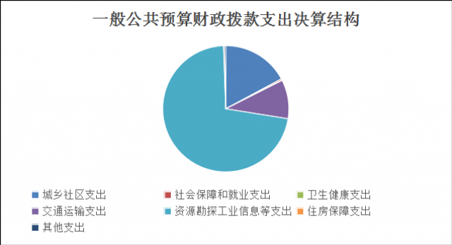 2024年度一般公共预算财政拨款支出9049.21万元,主要用于以下方面:社会保障和就业支出32.82万元,占0.36%;卫生健康支出7.26万元,占0.08%;城乡社区支出1551万元,占17.14%;交通运输支出900万元,占9.95%;资源勘探工业信息等支出6508.32万元,占71.92%;住房保障支出14.8万元,占0.16%;其他支出35万元,占0.39%。