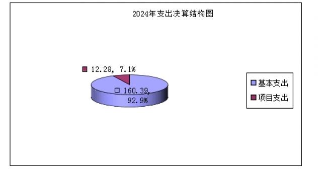 2024年度本年支出合计172.66万元,其中:基本支出160.39万元,占92.9%;项目支出12.28万元,占7.1%。