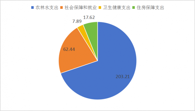 2024年度一般公共预算财政拨款支出291.16万元,主要用于以下方面:社会保障和就业支出62.44万元,占21.4%;卫生健康支出7.89万元,占2.7%;农业林水支出203.21万元,占69.8%;住房保障支出17.62万元,占6.1%。