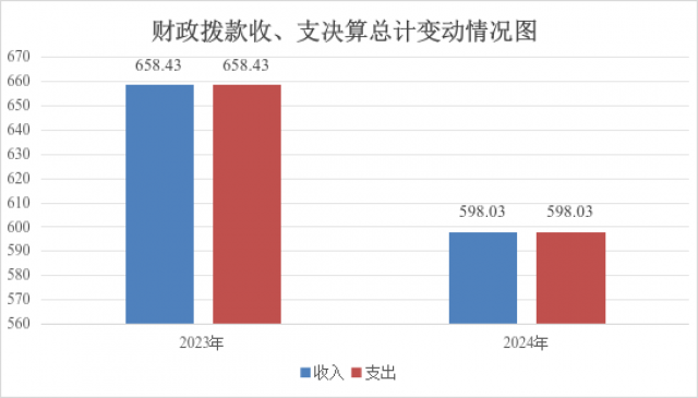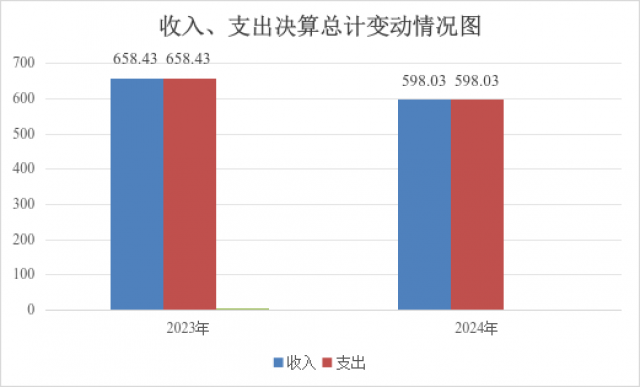 2024年度收入、支出总计均为598.03万元。与2023年度相比,收入、支出总计各减少60.4万元,下降9.2%。主要变动原因是本年度人员减少。