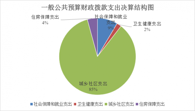 2024年度一般公共预算财政拨款支出458.03万元,主要用于以下方面:一般公共服务支出0万元;教育支出0万元;科学技术支出0万元;文化旅游体育与传媒支出0万元;社会保障和就业支出39.15万元,占8.5%;卫生健康支出9.03万元,占2%;城乡社区支出390.38万元,占85.2%;住房保障支出19.47万元,占4.3%。(注:仅罗列本部门涉及的全部功能分类科目,至类级)