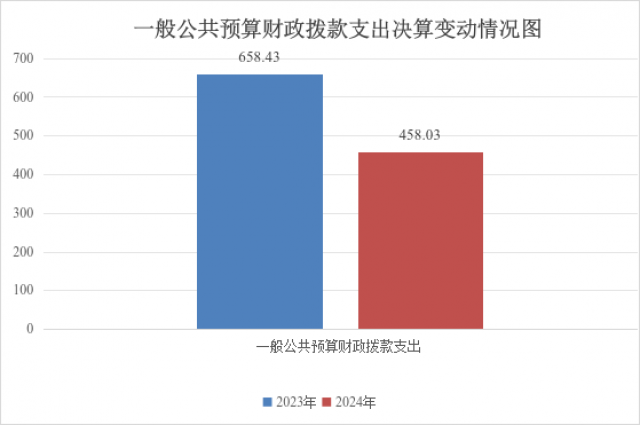 2024年度一般公共预算财政拨款支出458.03万元,占本年支出合计的76.6%。与2023年度相比,一般公共预算财政拨款支出减少200.4万元,下降30.4%,主要变动原因是本年度政府性基金预算财政拨款收入增大。