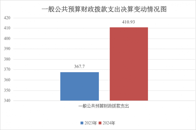 2024年度一般公共预算财政拨款支出410.93万元,占本年支出合计的100%。与2023年度相比,一般公共预算财政拨款支出增加43.23万元,增长11.76%。主要变动原因是人员增加