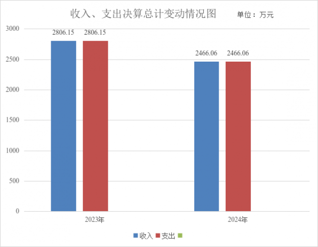 2024年度收入、支出总计均为2466.06万元。与2023年度2806.15万元相比,收入、支出总计各减少340.09万元,下降12.12%。主要变动原因是厉行节约,压减部门项目资金。
