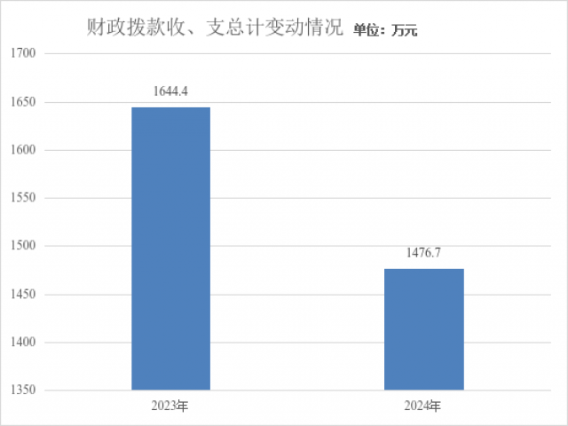 2024年我镇收、支总计1476.7万元,比上年1644.4万元减少167.7万元,减少了10.2%。主要变动原因是人员变化和项目减少。