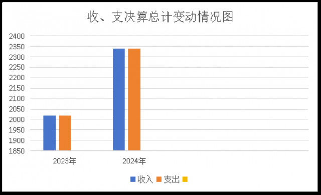 2024年度收、支总计均为2337.96万元。与2023年度相比,收、支总计各增加377.87万元,增加15.91%。主要变动原因2024年人员变化、项目支出