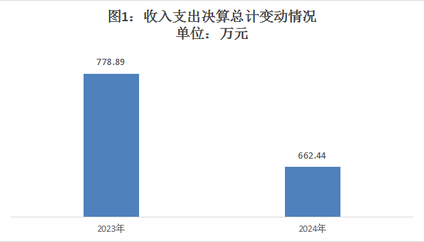 2024年度收入、支出总计均为662.44万元。与2023年度778.89万元相比,收入、支出总计各减少116.45万元,下降14.95%。主要变动原因是在职职工退休3人。