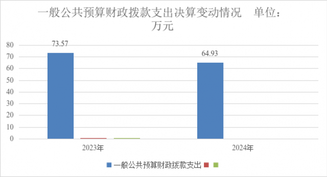 2024年度一般公共预算财政拨款支出64.93万元,占本年支出合计的100%。与2023年度73.57万元相比,一般公共预算财政拨款支出减少8.64万元,下降11.74%。主要变动原因是部门项目支出减少。