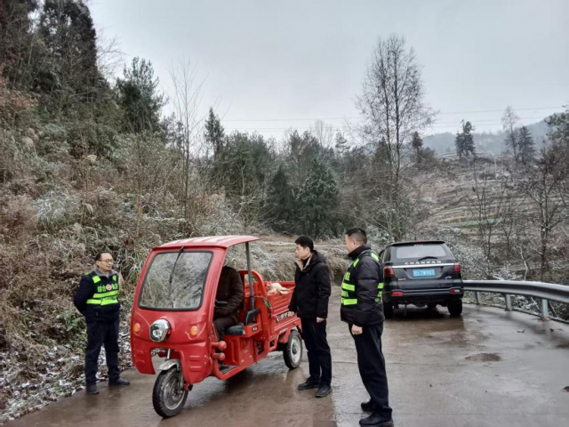 行动中,镇综合执法办聚焦山区道路弯道、坡道等易结冰打滑、事故高发路段,进行拉网式全面排查,对发现的安全隐患现场处置。同时,在积雪路段、急弯陡坡处科学设置安全警示标识,通过醒目提示引导过往车辆减速慢行、保持安全车距、谨慎驾驶。针对三轮车、摩托车等抗滑能力较弱的车辆,执法人员逐一拦停进行安全提醒,耐心讲解冰雪路面驾驶风险,劝导驾驶员规范配备防滑设施,对不具备安全通行条件的车辆,引导其暂停出行,从源头规避交通事故风险。