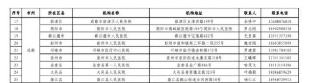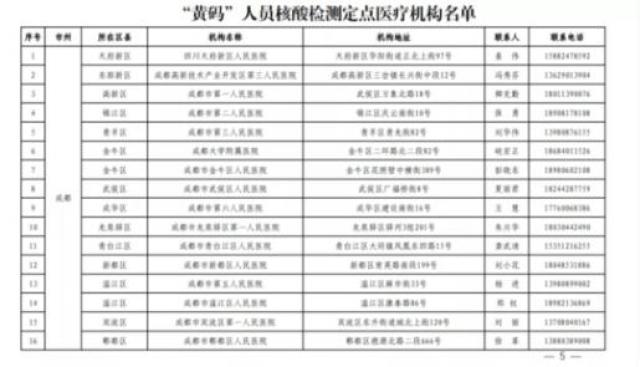 成都市“黄码”人员核酸检测定点医疗机构名单