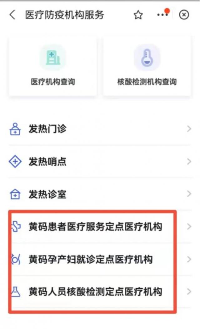 目前各县(市、区)均设有“黄码”患者医疗服务定点医院,最新名单可在四川天府健康通“医疗防疫机构查询”模块中查询(如上图),也可咨询当地卫生健康行政部门。