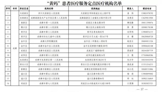 成都市“黄码”患者医疗服务定点医疗机构名单