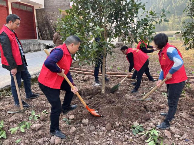 黄家河坝位于石铁南,是乡道连接巴山大峡谷快速通道的主要路口,也是进入石铁场镇的关键路口,来往人流大。挥锹铲土、扶苗填坑……上午九点半,在植树现场,大家三五成群,各司其职、干劲十足,合力栽下了一株株树苗,呈现出一派热火朝天的忙碌景象。经过一上午的辛勤劳动,50余株桂花树苗,120株红叶石楠在黄家河坝“安家落户”,把乡道装点得生机盎然,为石铁增添了一道靓丽的风景线。