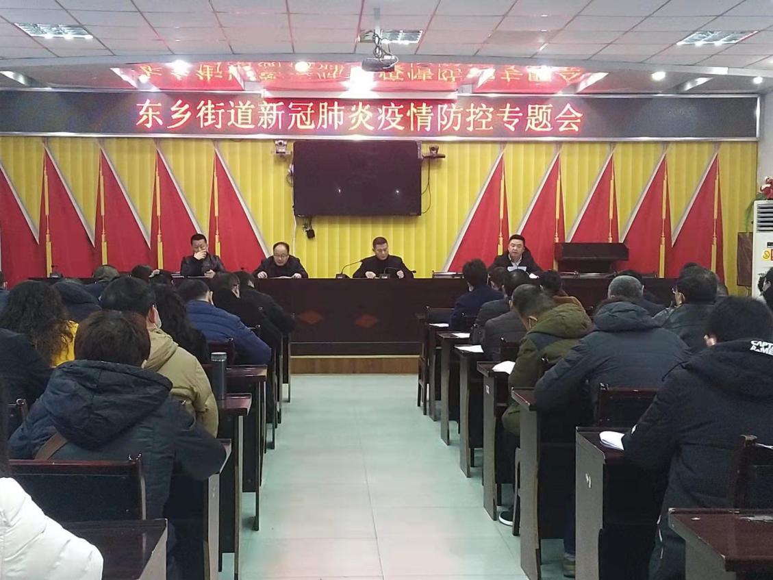 近日,按照“科学应对,群防群控”的原则,东乡街道党工委召开疫情防控专题会,学习和传达省市县专题会议精神,研究部署2022年春节前后新冠肺炎疫情防控工作。东乡街道疫情防控负责人张浩廉表示:我们要将疫情防控工作落实到基层,在各村(社区)加强返乡人员,特别是重点地区返回人员的排查,落实管控措施,同时要加大宣传力度,筑牢疫情防控第一线。