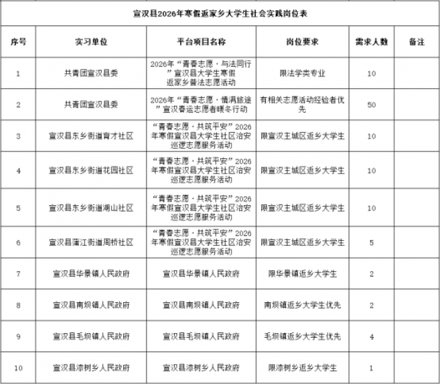 宣汉2026年寒假大学生“返家乡”社会实践活动来了!