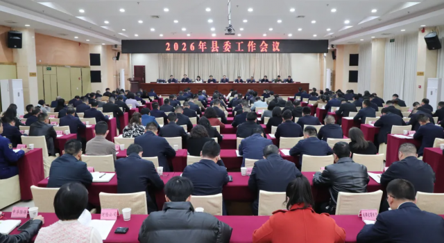 杨勇指出,过去一年,全县各级党组织和县委各工作部门深入学习贯彻习近平新时代中国特色社会主义思想,认真落实党中央和省委、市委、县委决策部署,坚持围绕中心、服务大局,推动党建与经济社会发展深度融合,纪检监察监督更加严实、组织保障作用更加彰显、宣传思想引领更加有力、统战凝心聚力更加有效、政法护航发展更加有为、社会治理体系更加健全,各项工作呈现出“点上有突破、面上有创新、整体有提升”的良好局面。2026年是“十五五”开局之年,也是县乡集中换届之年。全县上下要提高站位,统一思想,抓好各项工作,以高质量党建引领保障高质量发展。