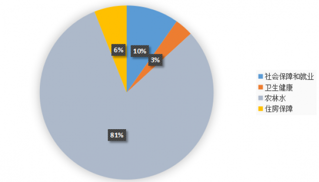 2021年一般公共预算财政拨款支出132.82万元,主要用于以下方面:208社会保障和就业(类)支出12.97万元,占9.76%;210卫生健康(类)支出4.54万元,占3.42%;213农林水(类)支出107.30万元,占80.79%;221住房保障(类)支出8.01万元,占6.03%。