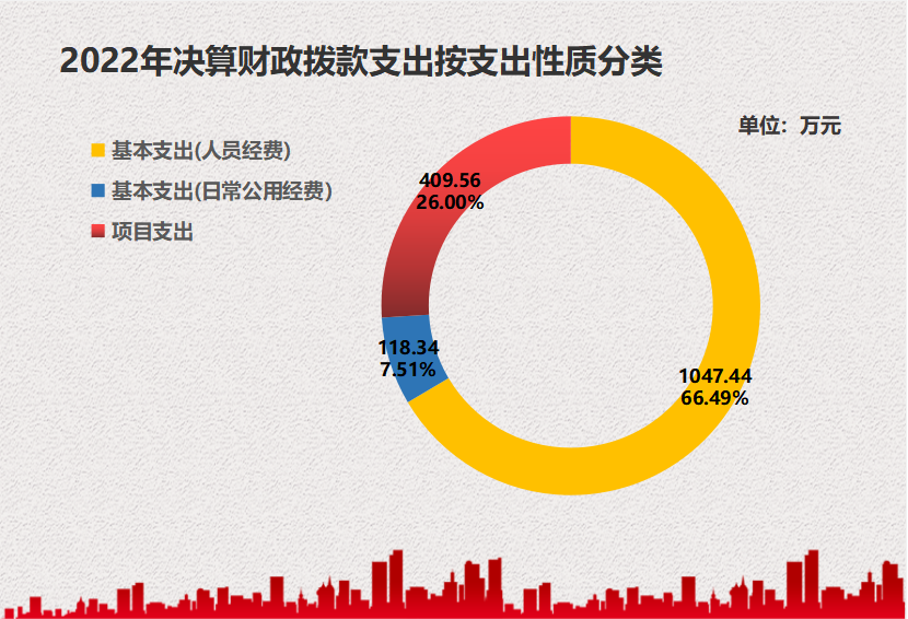 2022年本年支出合计1575.34万元,其中:基本支出1165.79万元,占74%;项目支出409.56万元,占26%;上缴上级支出0万元,占0%;经营支出0万元,占0%;对附属单位补助支出0万元,占0%。