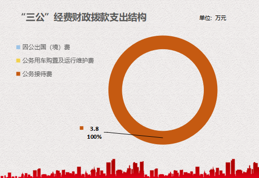 2022年“三公”经费财政拨款支出决算中,因公出国(境)费支出决算0万元,占0%;公务用车购置及运行维护费支出决算0万元,占0%;公务接待费支出决算3.8万元,占100%。具体情况如下: