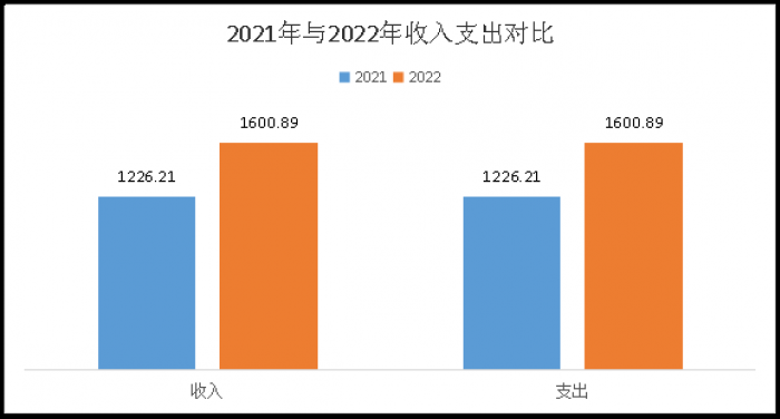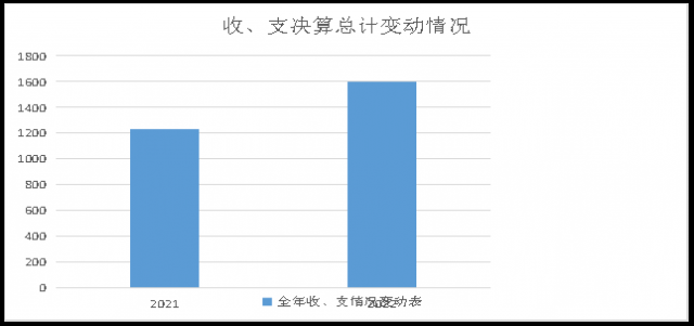 2022年度收、支总计1600.89万元。与2021年1226.21相比,收、支总计各增加374.68万元,增长30.56%。主要变动原因是人员增加及工程项目财政拨款追加。