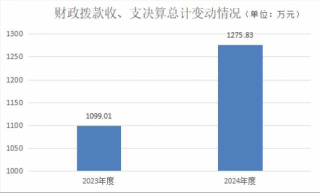 2024年度财政拨款收、支总计均为1275.83万元。与2023年度相比,财政拨款收、支总计各增加176.82万元,增长16%。主要变动原因是本年度工作人员增加了两人,地方一次性经济和立功受奖奖励金的发放比上年度有所增加。