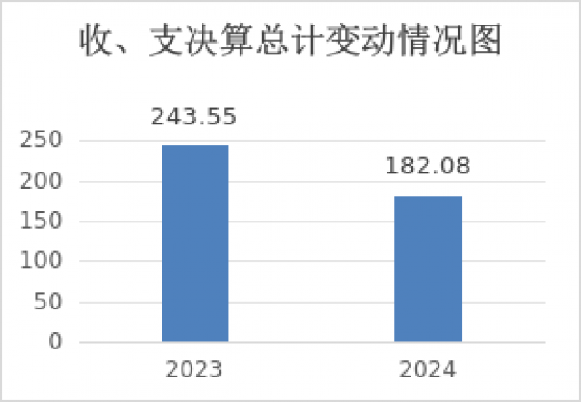 2024年度收入、支出总计均为182.08万元。与2023年度相比,收入、支出总计各减少61.47万元,下降25.2%。主要变动原因是2023年度购置专用设备,本年度未购置。