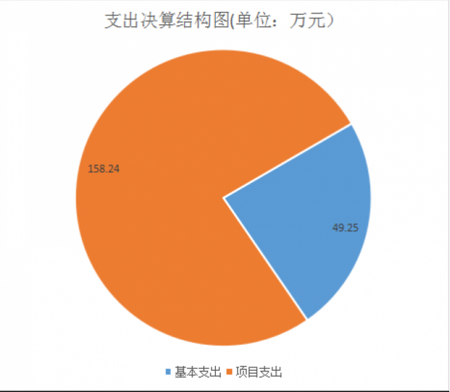 2024年度本年支出合计207.49万元,其中:基本支出49.25万元,占23.74%;项目支出158.24万元,占76.26%;上缴上级支出0万元,占0%;经营支出0万元,占0%;对附属单位补助支出0万元,占0%。