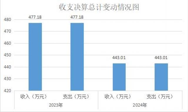 2024年度收、支总计均为443.01万元。与2023年度相比,收、支总计各减少34.17万元,减少7.2%。主要变动原因是医疗业务收入减少。