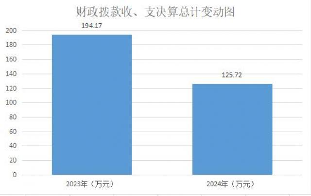 2024年度财政拨款收、支总计均为125.72万元。与2023年度相比,财政拨款收、支总计各减少68.45万元,减少35.25%。主要变动原因是财政项目拨款经费减少。