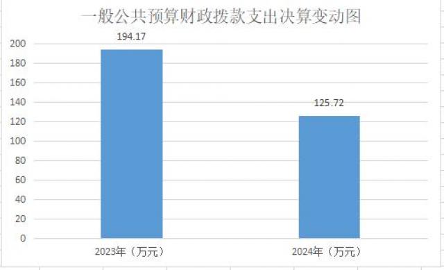 2024年度一般公共预算财政拨款支出125.72万元,占本年支出合计的28.37%。与2023年度相比,一般公共预算财政拨款支出减少68.45元,减少35.25%。主要变动原因是财政项目拨款经费减少。