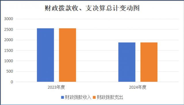 2024年度财政拨款收入、支出总计均为1885.43万元。与2023年度相比,财政拨款收入总计、支出总计各减少666.64万元,下降26.1%。主要变动原因是2023年度政府性基金预算财政拨款收入1187万元,2024年度无政府性基金预算财政拨款收入。