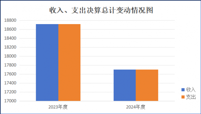2024年度收入、支出总计均为17699.73万元。与2023年度相比,收入、支出总计各减少1015.5万元,下降5.4%。主要变动原因是2023年度政府性基金预算财政拨款收入1187万元,2024年度无政府性基金预算财政拨款收入。