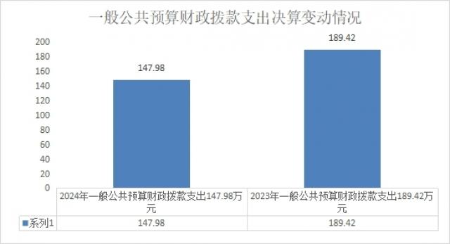 2024年度一般公共预算财政拨款支出147.98万元,占本年支出合计的50.62%。与2023年度相比,一般公共预算财政拨款支出减少41.44万元,下降21.88%。主要变动原因是基本公共卫生经费减少。