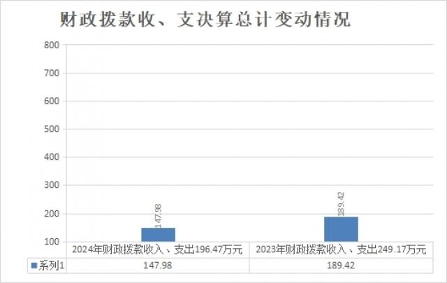 2024年度财政拨款收入、支出总计均为147.98万元。与2023年度相比,财政拨款收入总计、支出总计减少41.44万元,下降21.88%。主要变动原因是基本公共卫生经费减少。