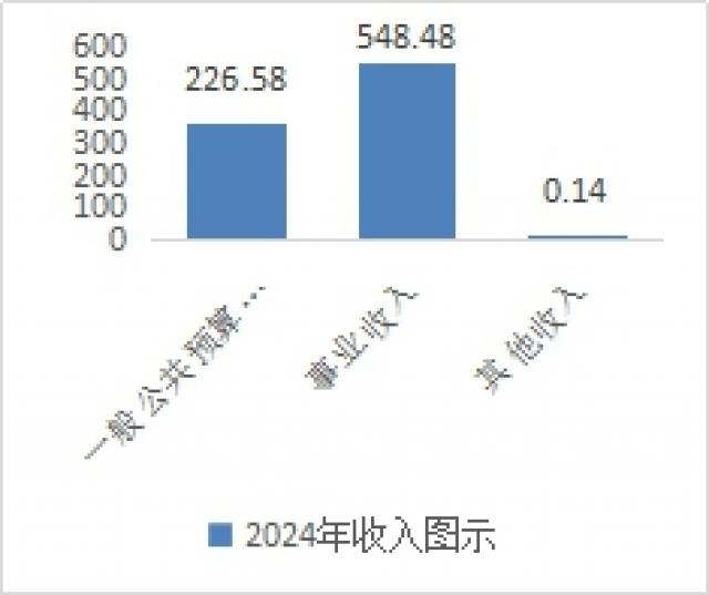 2024年本年收入合计775.19万元,其中:一般公共预算财政拨款收入226.58万元,占30%;事业收入548.48万元,占69.9%:其他收入0.14万元,占0.1%。