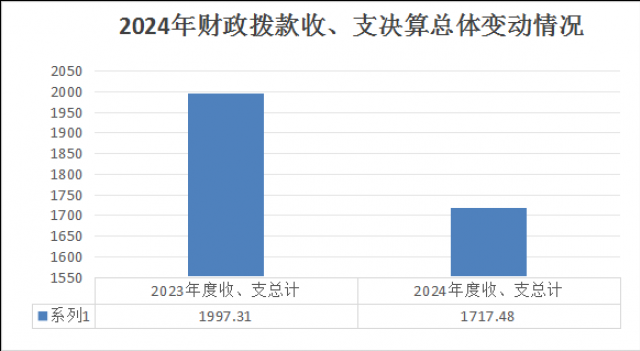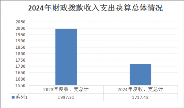 2024年度收、支总计均为1717.48万元。与2023年度相比,收、支总计各减少279.83万元,减少14%。主要变动原因是基本公共卫生服务项目减少,致相应经费减少。