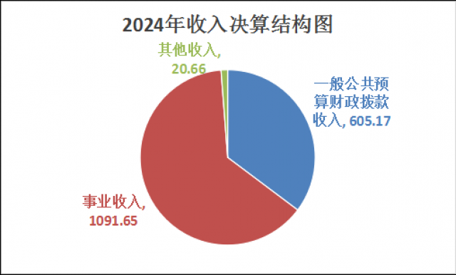 2024年度本年收入合计1717.48万元,其中:一般公共预算财政拨款收入605.17万元,占35.2%;事业收入1091.65万元,占63.6%;其他收入20.66万元,占1.2%。